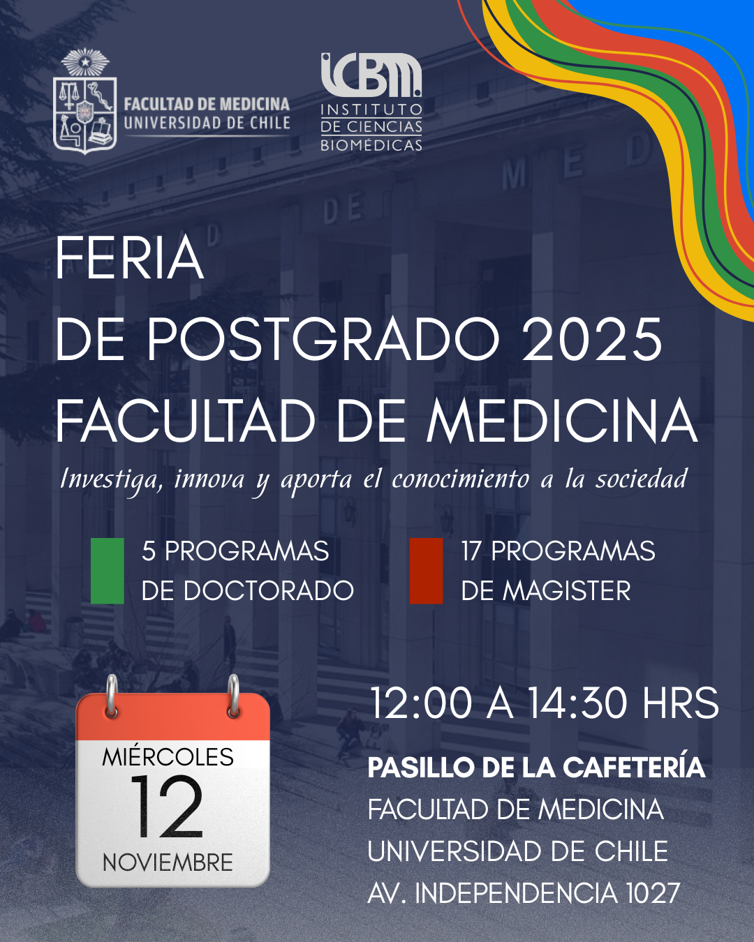 Invitamos a toda la comunidad de la Facultad de Medicina a participar en la Feria de Postgrado 2025, una instancia orientada a estudiantes de postgrado y de pregrado próximos a titularse.